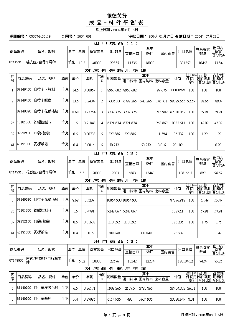 报关通部分界面和报表 |
